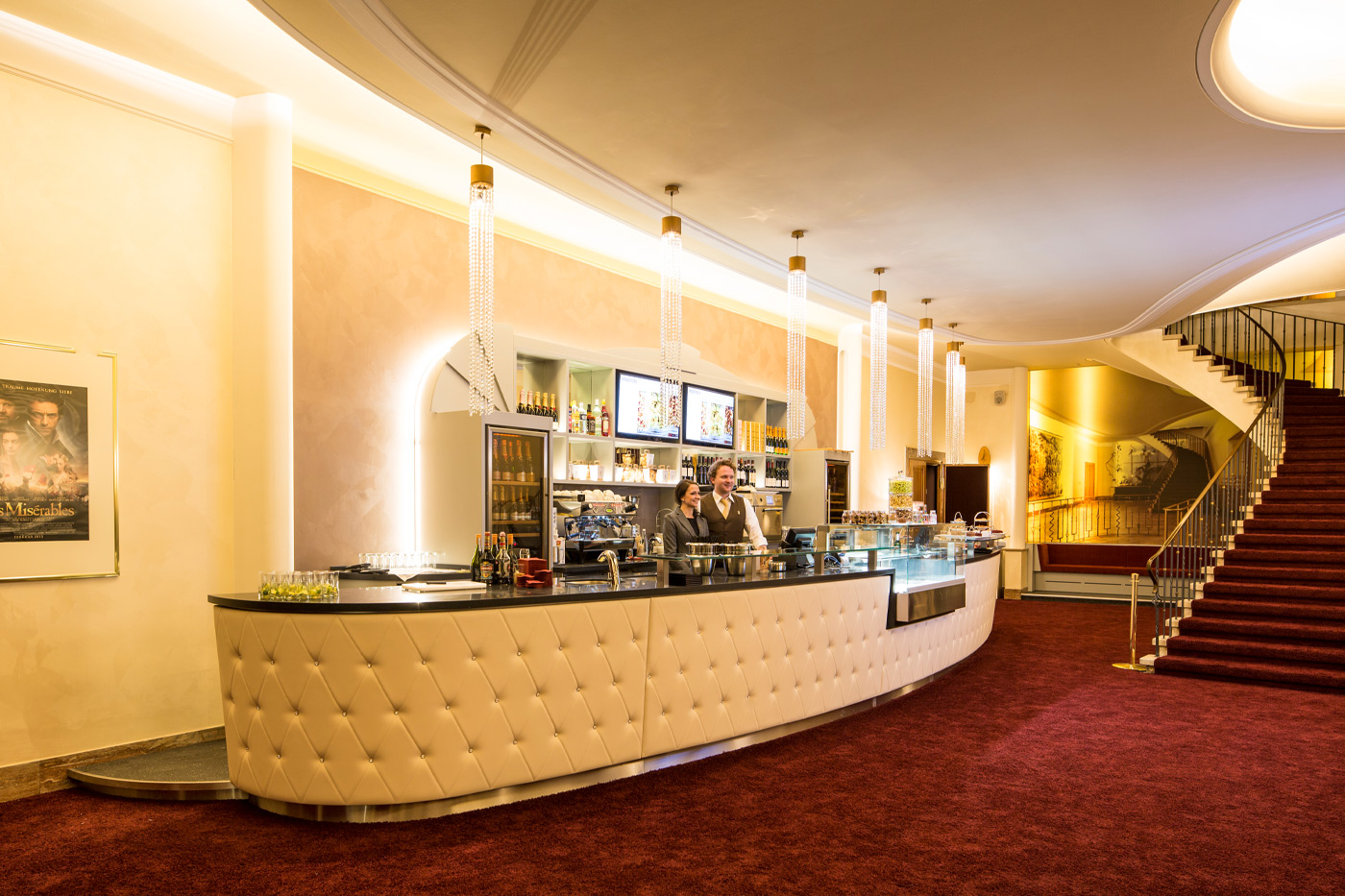 Über die Kinomatrix können Lichtstimmungen von der Kinotechnik aus aufgerufen werden. Die Piktogrammleuchten werden im Normalbetrieb über die ISYGLT LED-Dimmer gedimmt. Ein ausgeklügeltes Havariekonzept bindet alle Teile der Allgemeinbeleuchtung in die Sicherheitsbeleuchtungsanlage mit ein. Die leistungslose Ansteuerung der LED-Vouten-Beleuchtung (ca. 60m) erfolgt über nur einen ISYGLT LED-Treiber. Die Saalbeleuchtung wird in Abhängigkeit von der Kinotechnik mit einem angenehmen Übergang in die jeweiligen Lichtstimmungen gedimmt.