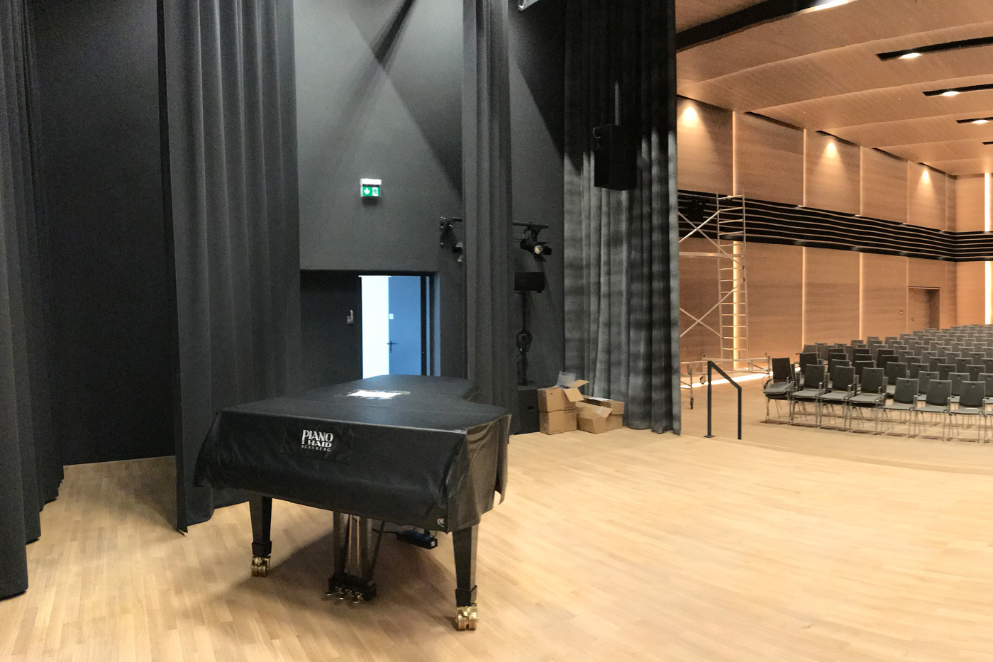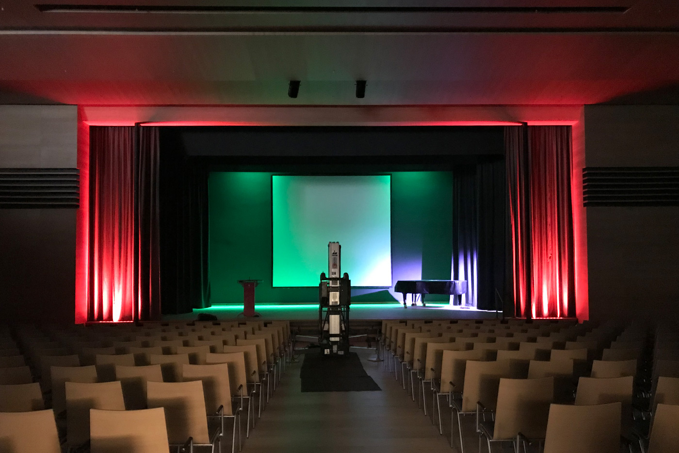 - Lichtwand bestehend aus vielen LED-Kacheln (RGBW, je 256 LEDs) zum Austausch von LS-Röhren mit Farbfiltern. Die flächige Anordnung der LEDs erfolgte so, dass eine besonders homogene Ausstrahlung gewährleistet wurde. Dabei sind die Farben der LED-Kachel so an die menschliche Wahrnehmung angepasst worden, dass eine Vielzahl von Farbmischungen möglich ist. Die von einem Künstler entworfenen Lichtszenarien können mit den LED-Kacheln exakt nachgebildet werden, zudem ist noch eine Vielzahl an anderen Szenarien, Farbabläufen und Bespielungen möglich.