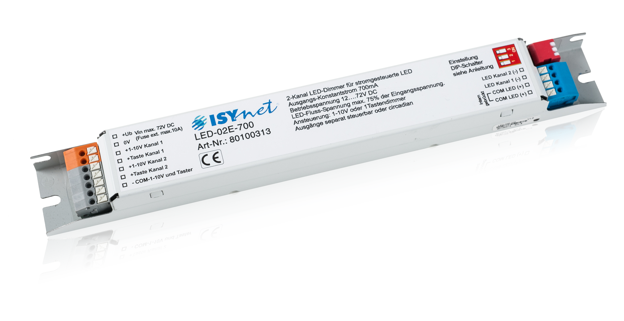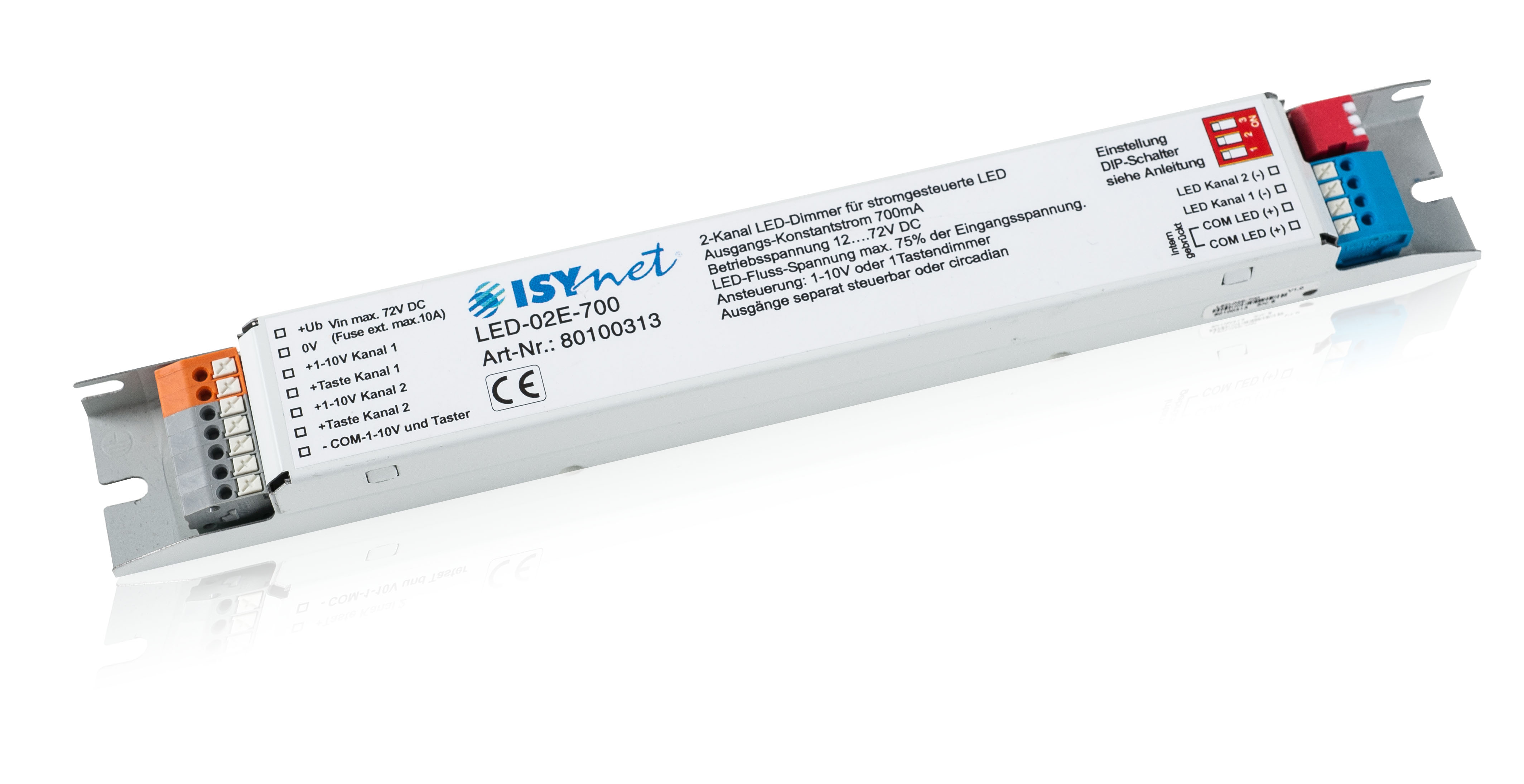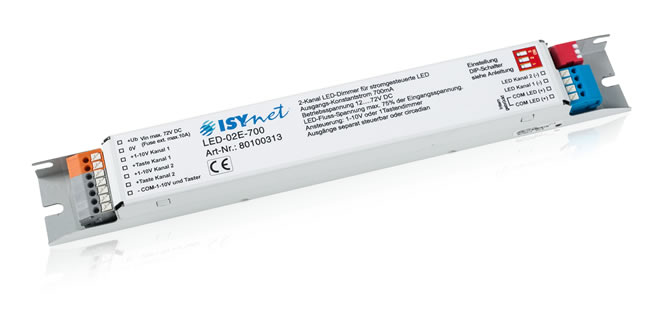 - 2 Dimmkanäle für LEDs 12-72V, max. 700mA