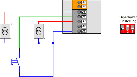 Sollten mehrere Bedienstellen im Raum nötig sein, sind weitere Taster parallel anschließbar.