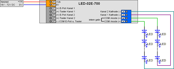 | LED Kanal 2 (-) | Kathode (-) Kanal 2 |