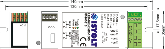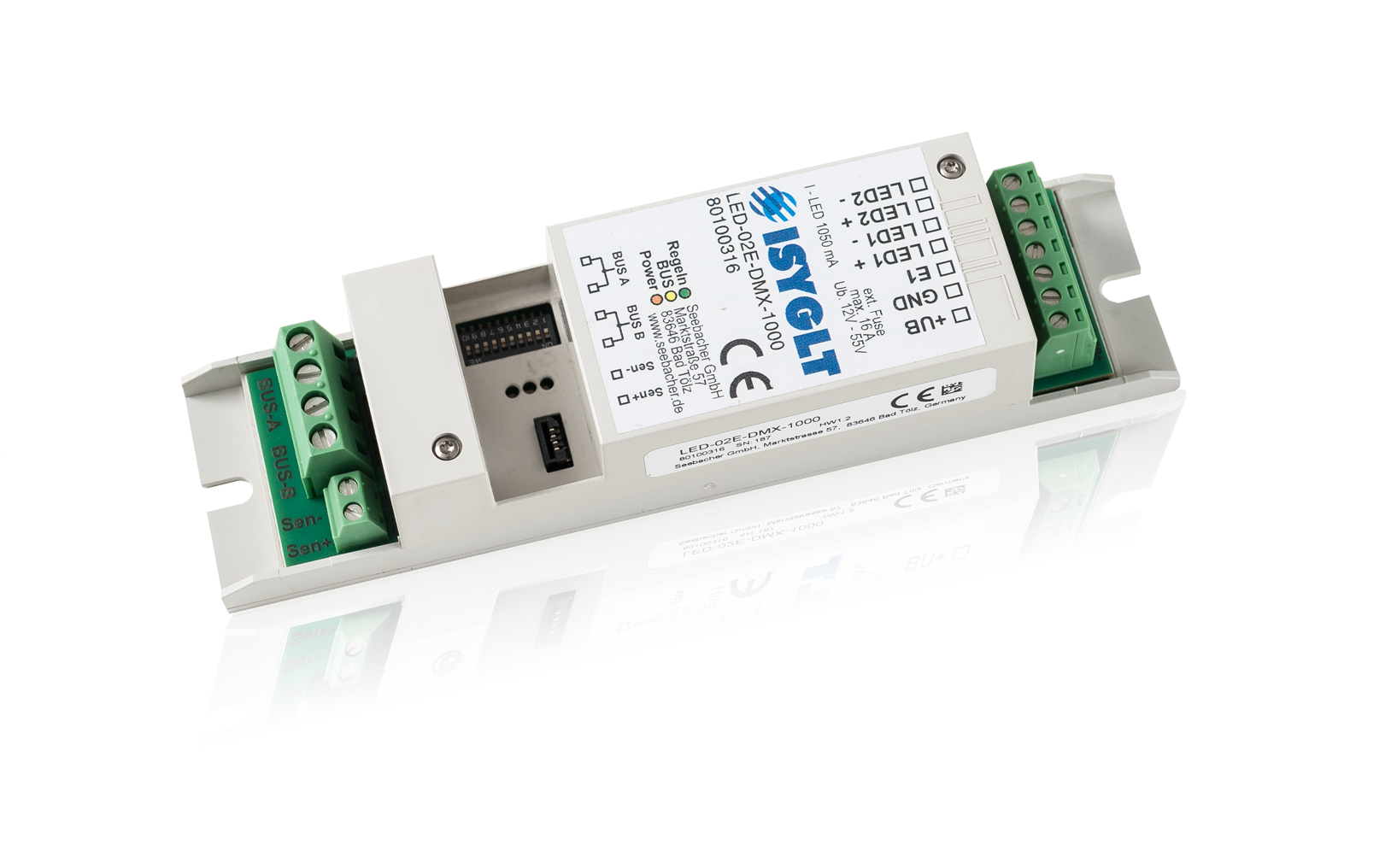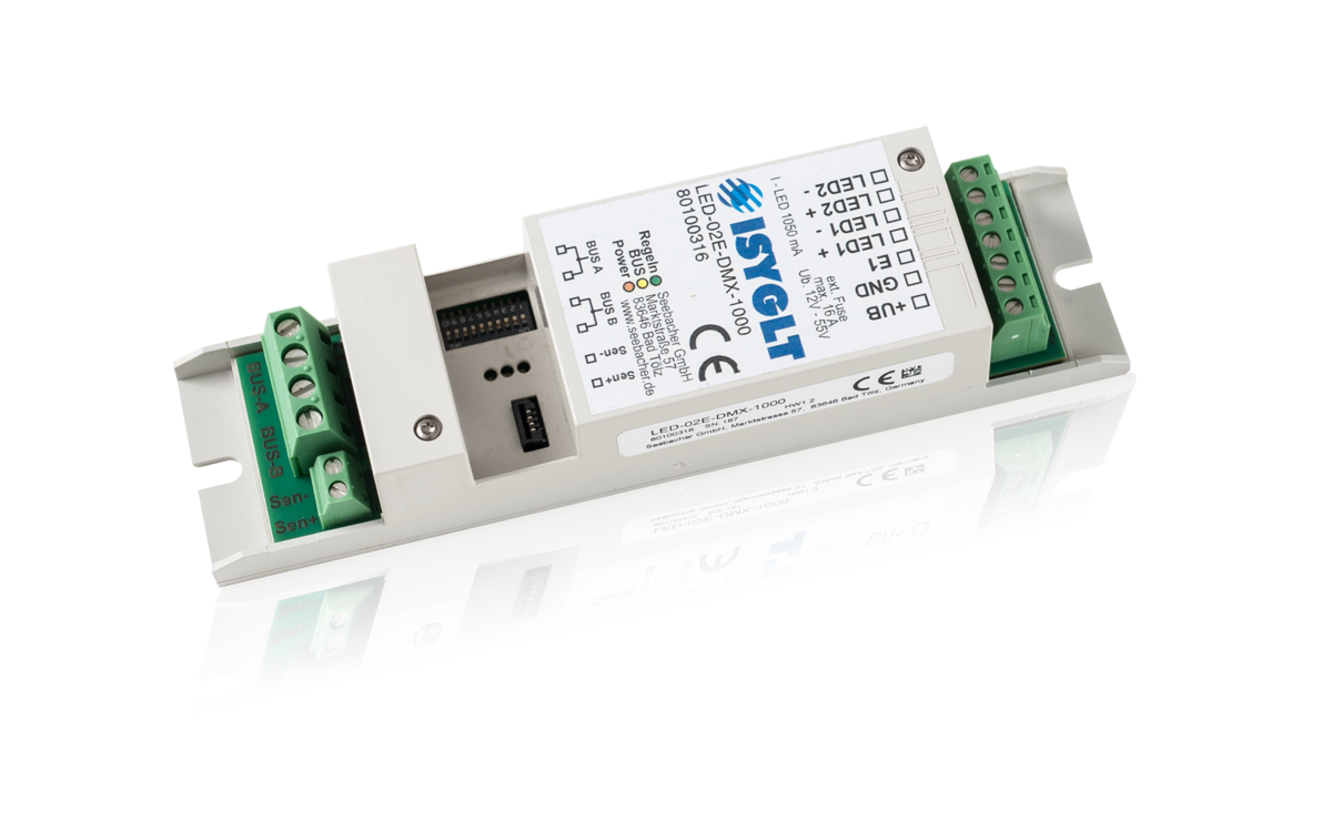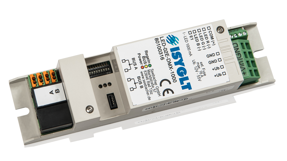 Der LED-Dimmer kann wahlweise am ISYGLT-BUS oder DMX512-BUS betrieben werden.