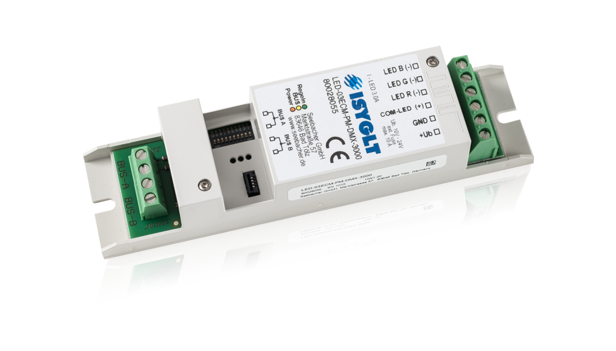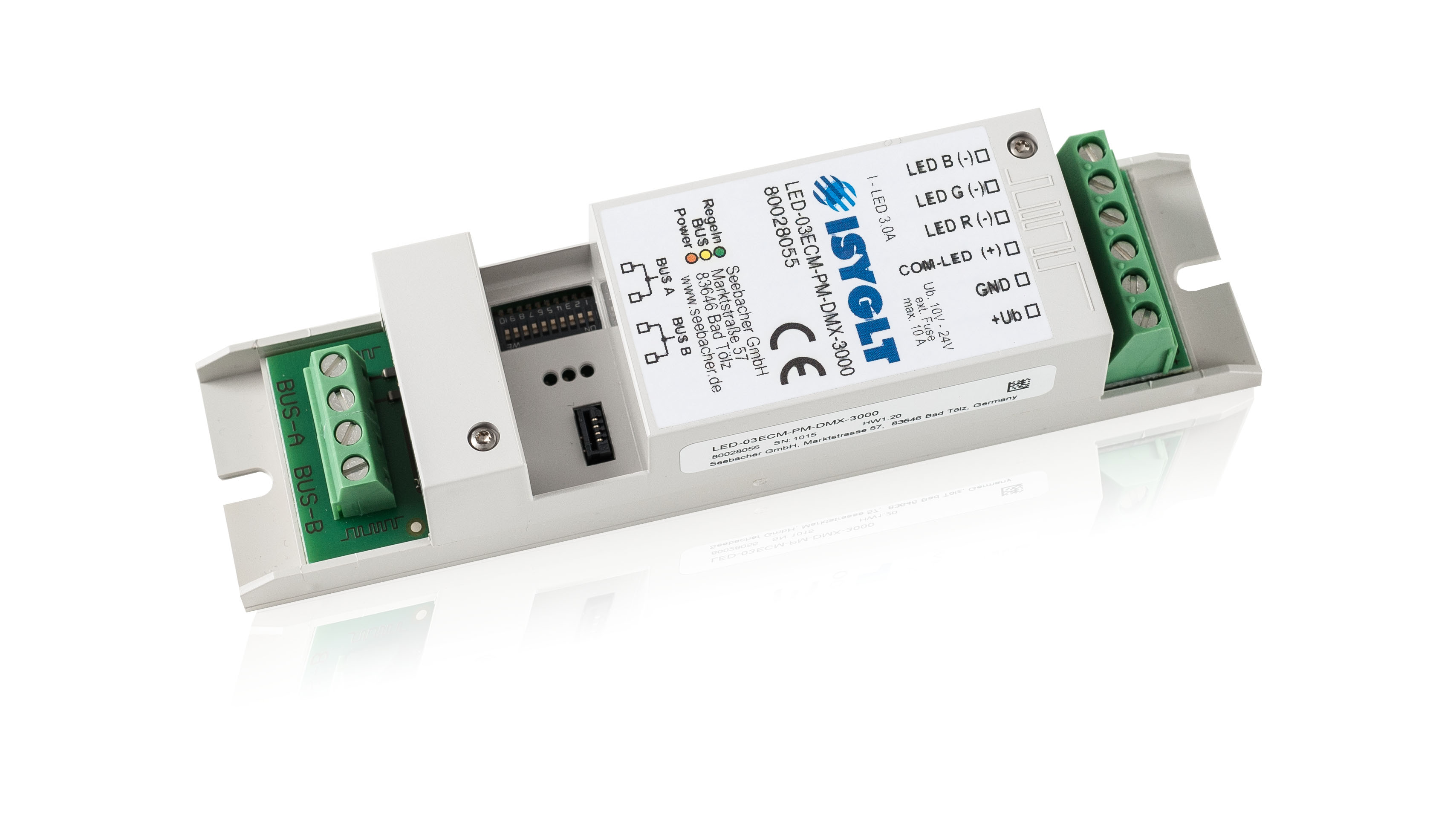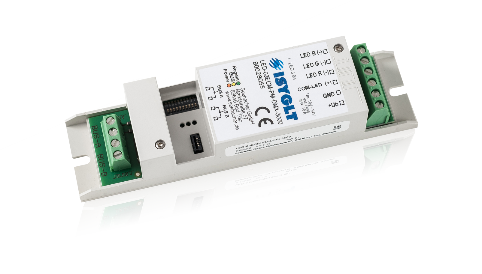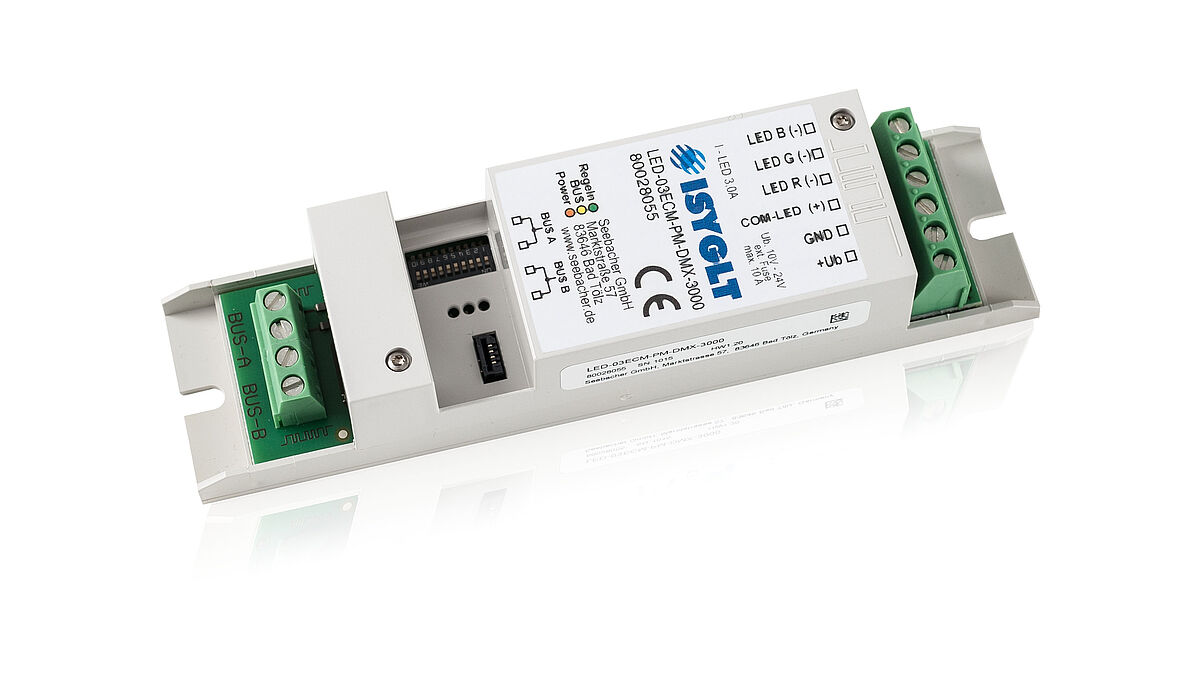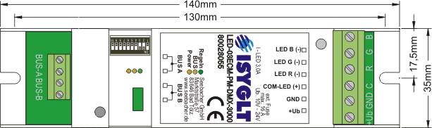 Der LED-Dimmer kann wahlweise am ISYGLT-BUS oder DMX512-BUS betrieben werden.