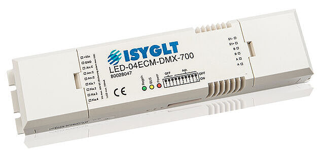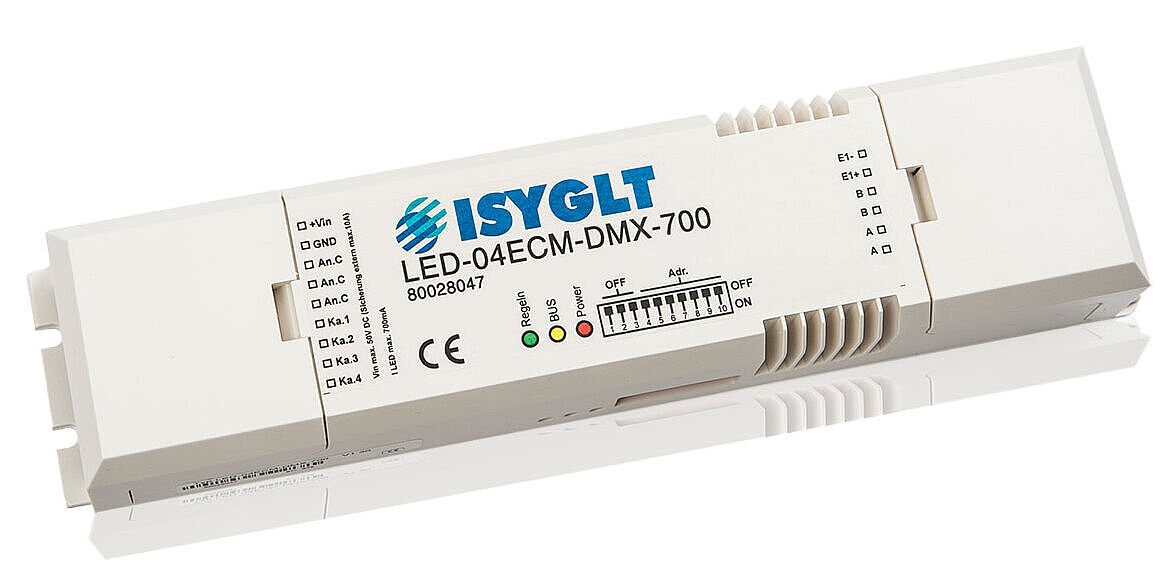 Der LED-04ECM-DMX-700 kann wahlweise am ISYGLT-BUS oder DMX512-BUS betrieben werden.