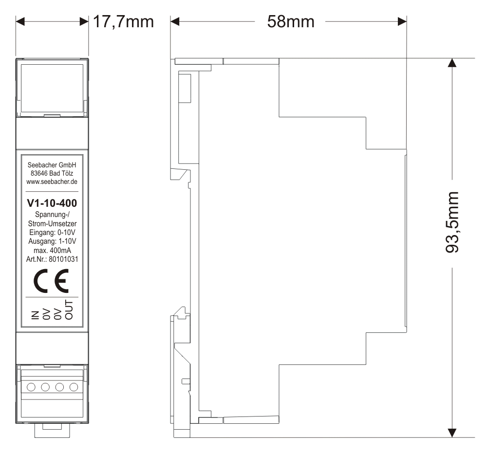 Der Sinkstrom-Konverter (Spannungs-/Stromumsetzer) V1-10-400 wurde entwickelt, damit 1-10V-steuerbare EVGs auch mit einer Fremdsteuerspannung von 0-10V angesteuert werden können (max. 700m Leitungslänge). Er kann einen EVG-Sinkstrom bis max. 400mA aufnehmen.