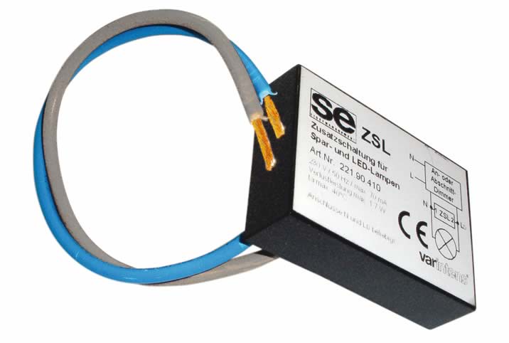 Die Zusatzschaltung für Spar- und LED-Lampen dient zur Verbesserung des Dimmverhaltens beim Dimmen von Sparlampen und Retrofit-LED-Lampen.