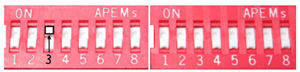 Die linken 3 DIP-Schalter für den Mode müssen auf OFF, OFF, ON gestellt werden.