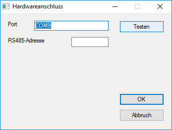 Software (Download hier) starten, unter "Extras" die Funktion "Hardwareanschluss" auswählen und auf "Testen" klicken.