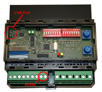 2. über die Klemmen A und B des Dimmers, per RS-485 z.B. mit einem USB-to-Serial RS-485-Adapter.