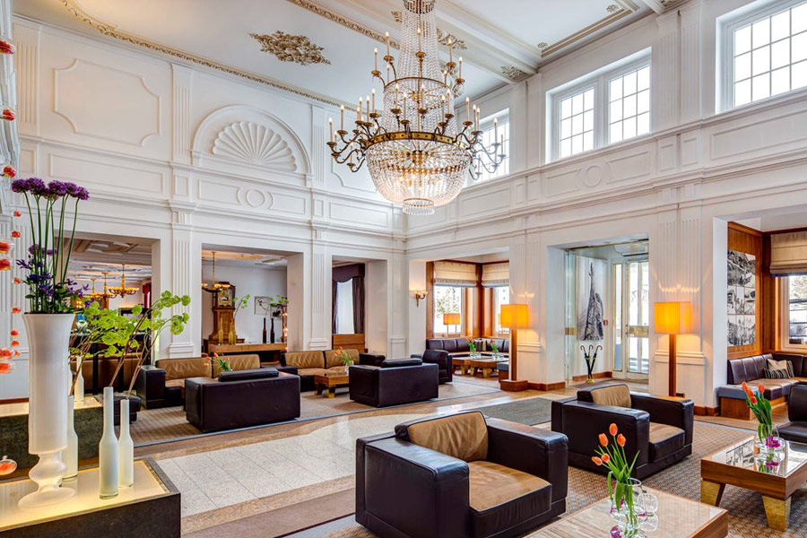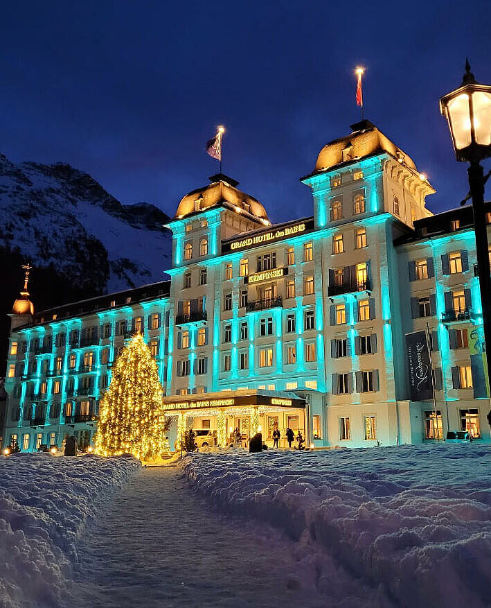 Zum Beginn der Sommersaison 2021 erstrahlt die Fassade des Grand Hotel des Bains Kempinski St. Moritz im neuen Lichtdesign