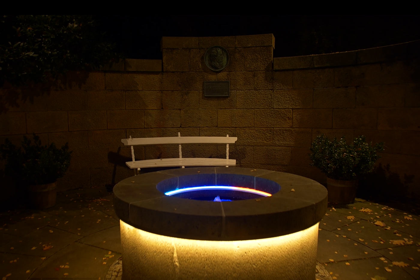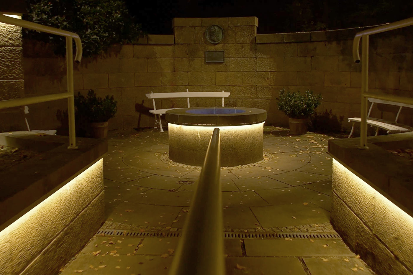 Eine weitere Raffinesse birgt der Goethe-Brunnen. Goethes Farbkreis kann hier mit LED-Beleuchtung farbgetreu wiedergegeben werden.
