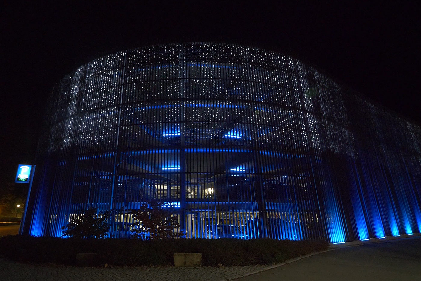 Das Problem der Lichtverschmutzung - also negative Auswirkungen auf die Umwelt durch künstliches Licht - wurde von Anfang an berücksichtigt und war somit ein wichtiger Bestandteil der Lichtplanung. Vor allem mit dem Einsatz einer schonenden Technologie, einer eher sanften Beleuchtungsintensität und einer begrenzten Nutzungsdauer bis Mitternacht wurden sinnvolle Maßnahmen zum behutsamen Umgang mit der natürlichen Umwelt getroffen.