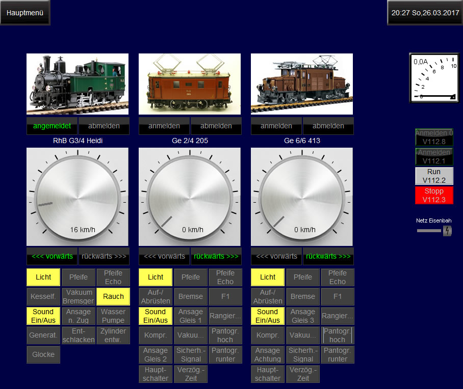 Visu-Beispielansicht einer Gartenbahn-Steuerung mit Massoth-Zentrale